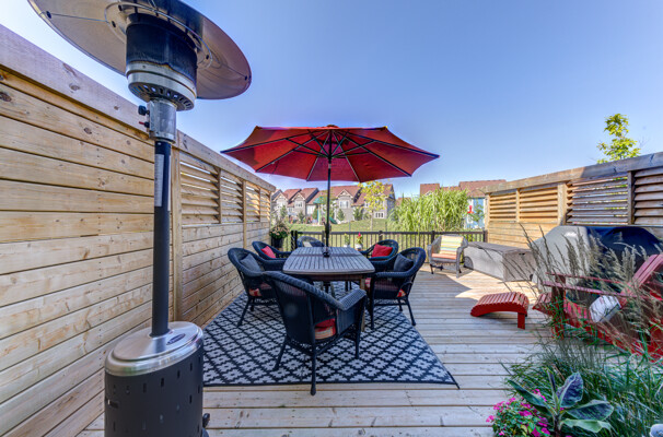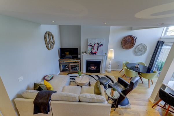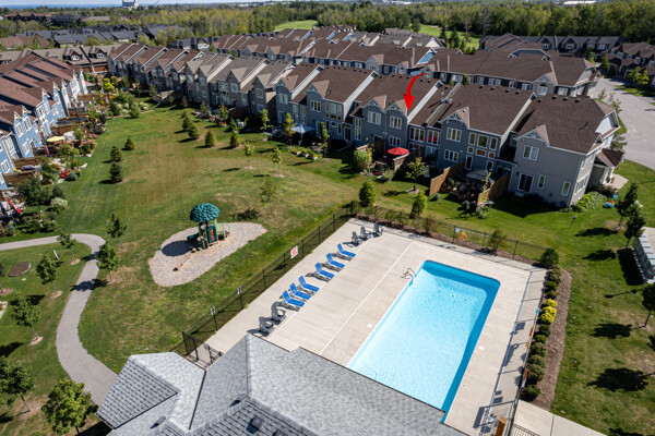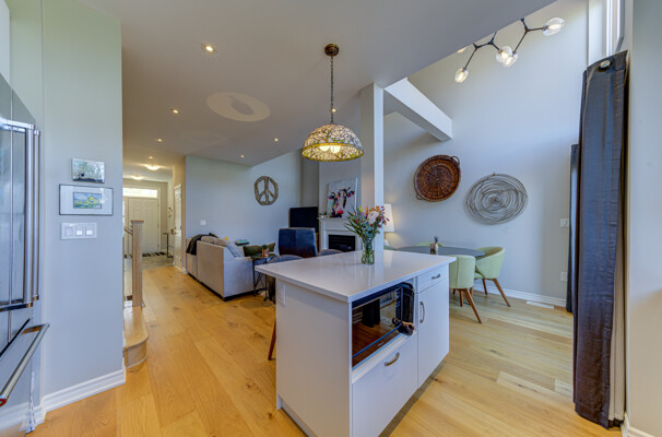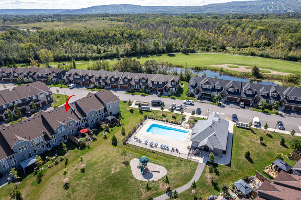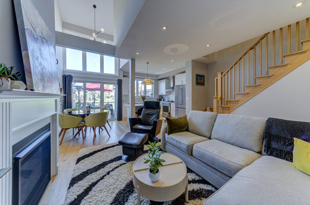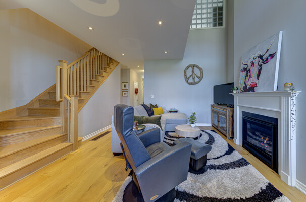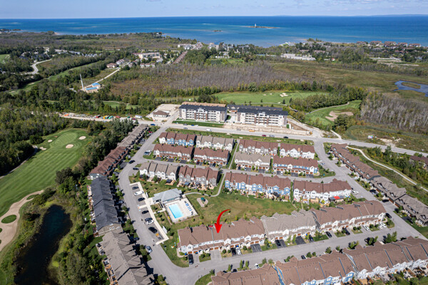 Welcome to this exquisite townhome in the sought-after Blue Fairway offering a premium lot backing onto greenspace. This immaculately maintained property boasts a range of impressive upgrades and features. As you step inside, you'll immediately notice the elegant oak floors and strategically placed potlights that enhance the overall ambiance of the home. The great room is a true highlight, featuring vaulted ceilings and a cozy gas fireplace that creates a warm and inviting atmosphere. The heart of this home is the beautiful white kitchen, complete with quartz countertops and a spacious island that's perfect for cooking and entertaining, whether you're preparing family meals or hosting gatherings.. One of the standout features of this townhome is its finished basement, which includes a unique sleeping nook, adding versatility to the space. Additionally, there's a convenient cold storage room, providing ample storage solutions. Step outside, and you'll discover your own private oasis. The large deck and meticulously landscaped yard provide a serene setting for outdoor relaxation and entertainment. A storage locker on the front porch is a convenient space for your skis and other belongings. This Blue Fairway townhome offers a perfect blend of comfort, style, and functionality, making it a must-see property for those seeking a premium living experience. Don't miss the opportunity to make this stunning townhome your new home sweet home.
