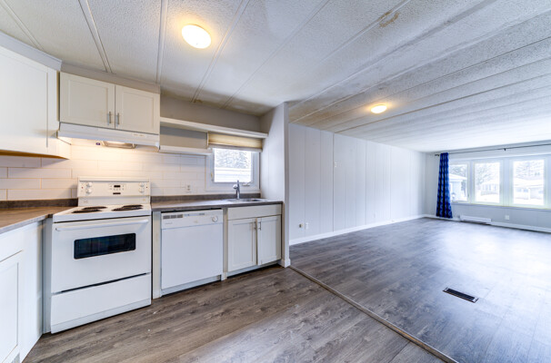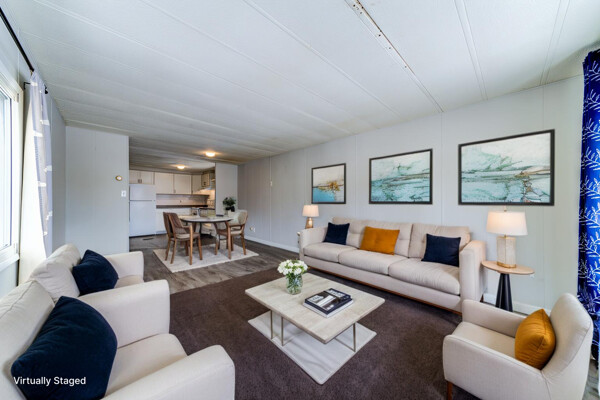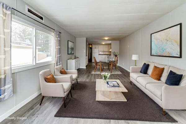 This 2-bedroom, 1-bath modular home features an open-concept kitchen and living room, offering a functional layout for both daily living and entertaining. A front deck provides a spot to enjoy a morning coffee or unwind in the evening. At the back of the home, a second deck off the den offers a more private outdoor space. The den is a flexible area that can be used as a home office, craft room, or mudroom, depending on your needs. A storage shed at the rear of the property offers additional space for tools, outdoor equipment, or seasonal items. Conveniently located within walking distance of various shops and restaurants, this home offers easy access to everyday amenities. Monthly Costs: Rent: $751.74Tax (Lot): $26.74Tax (Structure): $17.12 TOTAL MONTHLY: $795.60 Some photos have been virtually staged.